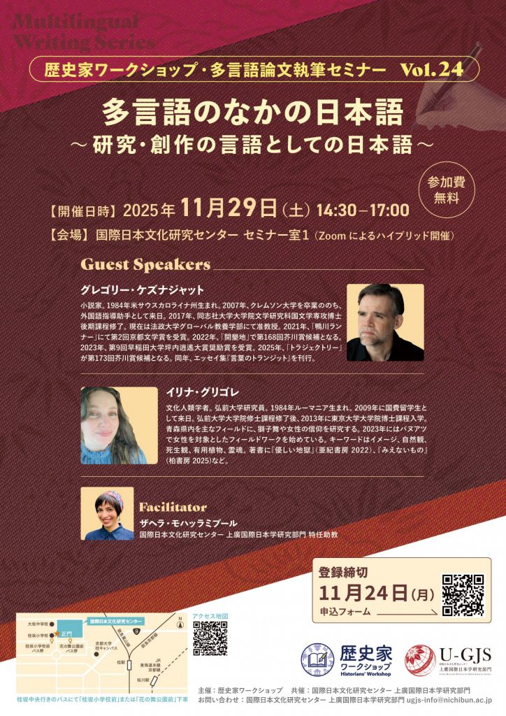 多言語論文執筆シリーズ Vol. 24:多言語のなかの日本語〜研究・創作の言語としての日本語〜(11月29日)