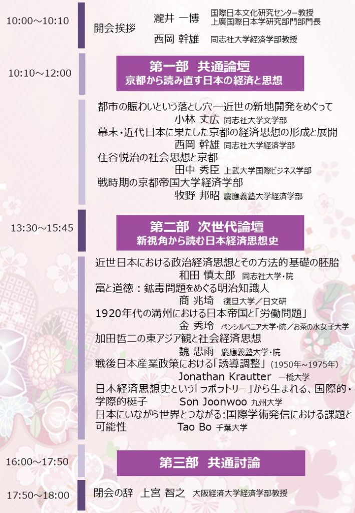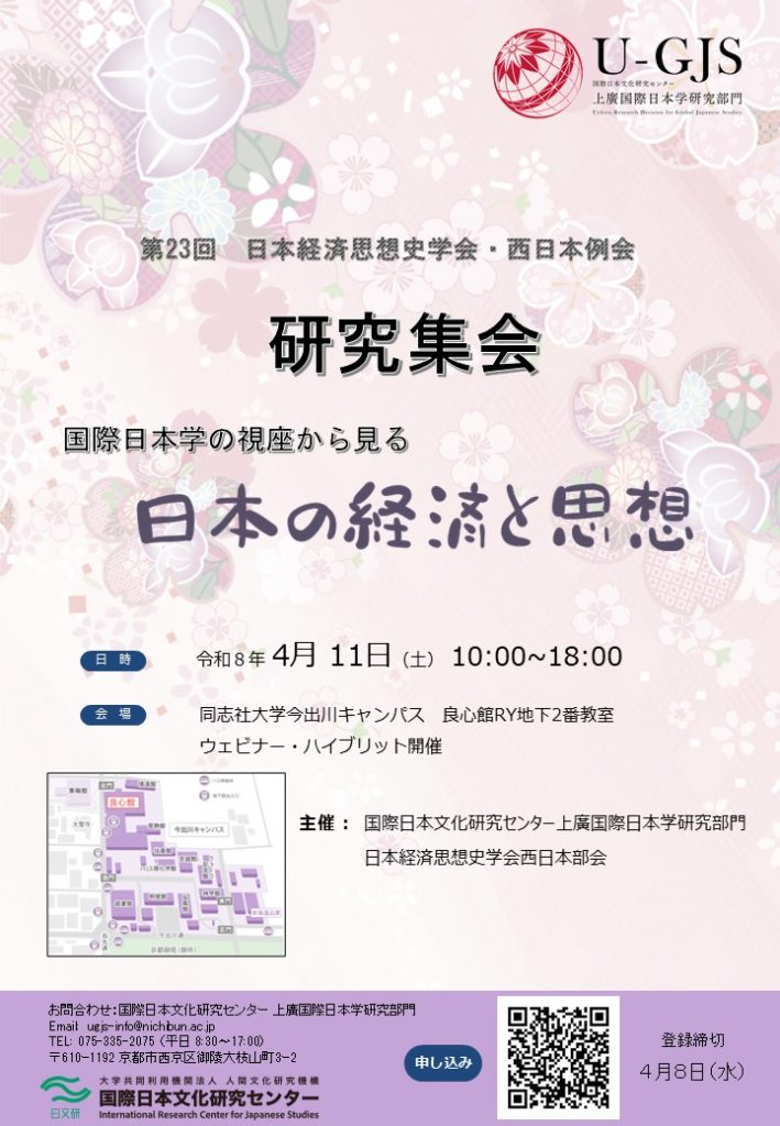 主催 国際日本文化研究センター 上廣国際日本学研究部門、日本経済思想史学会西日本部会